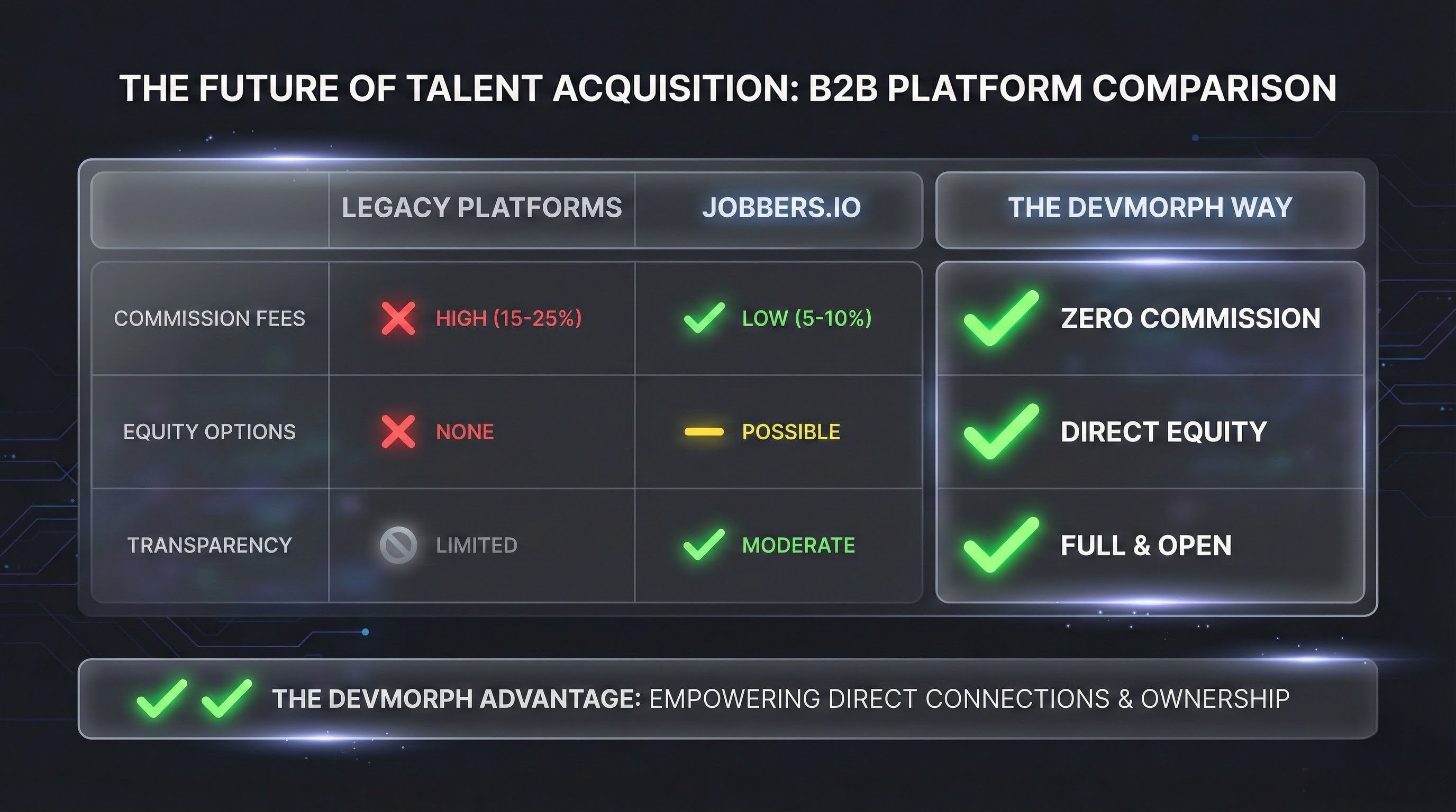 By 2026, the tech market has evolved. Senior engineers are walking away from the reverse-auction model of platforms like Hired. At DevMorph, we believe the future of software engineering contracts isn't about being "matched" by a bot—it's about being chosen for your specific expertise, while keeping 100% of your margins.